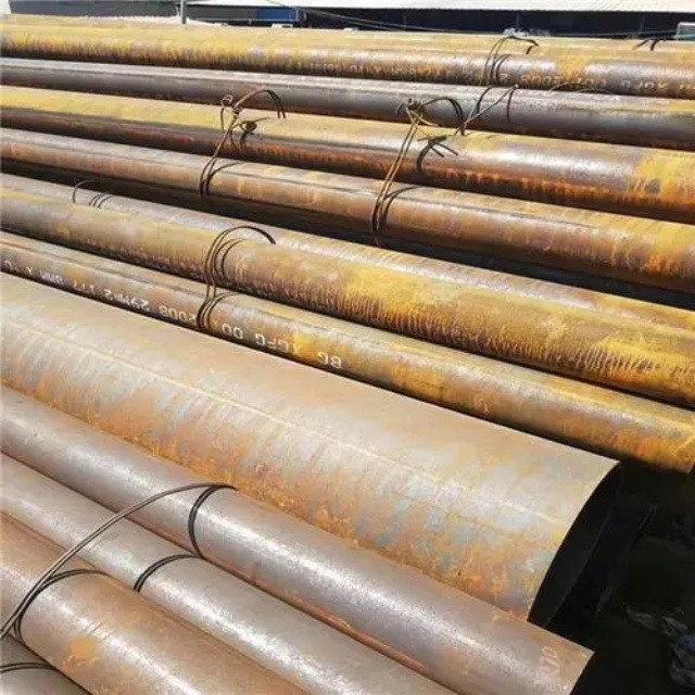 南阳gb3087无缝钢管要用钢锭或实芯管料经破孔制成毛管,随后经热扎、冷轧或冷拨制成。南阳gb3087无缝钢管在中国钢管业中具备重要的位置。据不完全统计,我国目前无缝管生产公司约240多家,无缝管机组约250多套,年产能力约450多万吨。从规格看,南阳gb3087无缝钢管的原料是圆管坯,圆管胚要经过切割机的切割制作成长短约为1米胚料,并经输送带送至溶炉内加温。钢坯被送进溶炉内加温,温度约为1200℃。燃料为氢气或乙炔。炉内温控是关键性的难题.圆管坯出炉后要经过压力穿孔机开展穿空。一般较常见的穿孔机是锥形辊穿孔机,这类穿孔机生产效率高,产品品质好,破孔扩径量多,可穿多种钢种。破孔后,圆管坯就先后被三辊斜轧、连轧或挤压。挤压后应脱管定径。定径机根据锥形钻头高速运转入钢胚打孔,产生钢管。钢管内径由定径机钻头的直径长短来决定。钢管经定径后,进入冷却塔中,根据喷水冷却,钢管经冷后,就要被校直。钢管经校直后由输送带送往金属探伤机(或压力试验)进行内部探伤。若钢管内部有裂痕,气泡等问题,将被检测出。钢管质检后还要通过严格手工选择。钢管质检后,用漆料喷上编号、规格、生产日期等。并由吊车吊入仓库里。